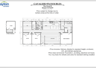 Details Name: Lloyd Bedrooms: 3 Bathrooms: 2 Dimensions (ft): 32 x 68 Square Feet (Approx.): 1920 Floor PlanGallery